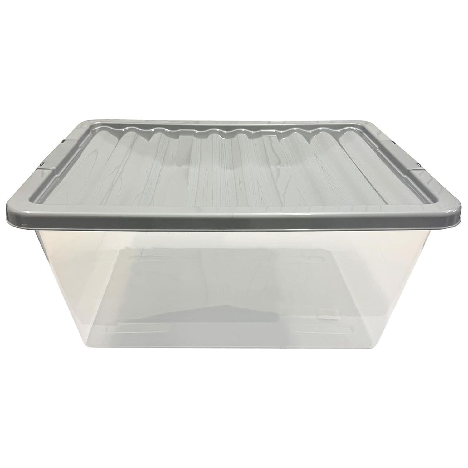 These clear plastic storage boxes with silver lid offer a practical storage solution for household items with transparent plastic that makes it easy to identify the contents inside. The stackable design of these storage boxes allows you to maximize your storage space. By stacking them on top of each other, you can efficiently use vertical space in your garage, closet, or storage room, helping you make the most of your available space. These are strong durable containers.