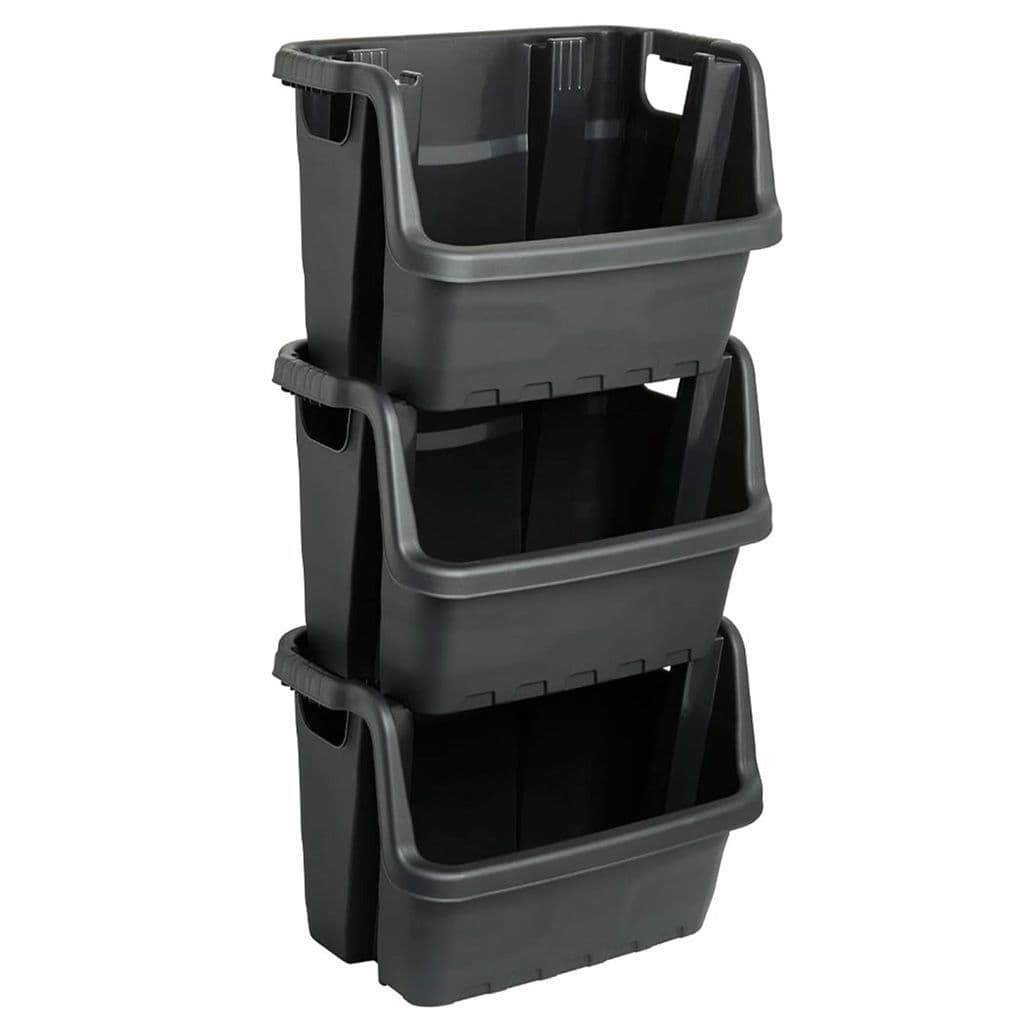 - OPEN FRONT : Each crate features an open front for easy access to the contents and is complete with large integrated handles for ease of movement. A perfect storage solution for garden tools, cleaning products and car care or for separating recycling. It’s also great for kitchens and putting under sinks. These stacking crates are great for many uses.