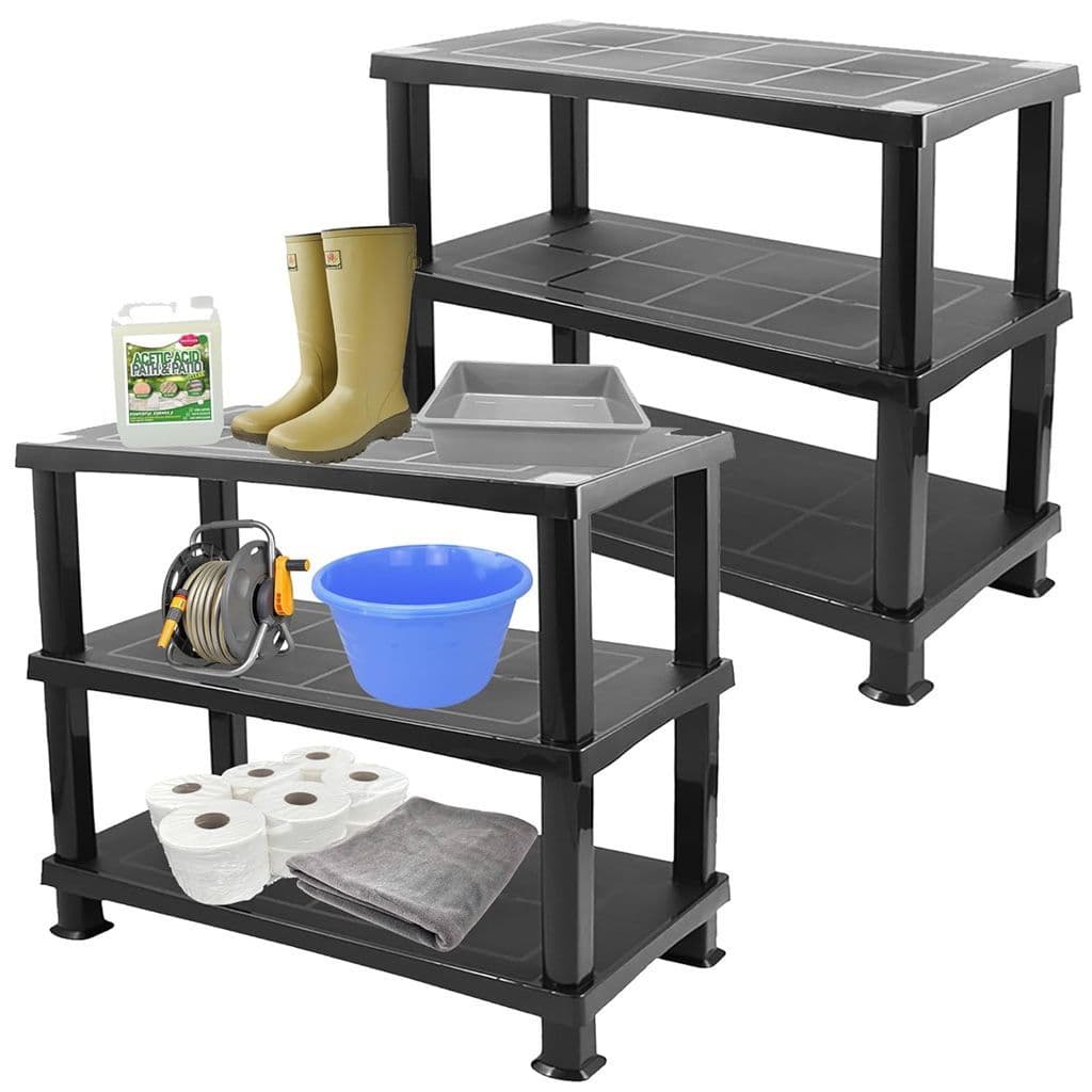 These are sturdy plastic shelving units, great for the garage, utility room and general domestic use. Our garage shelving range is easy to assemble, adjustable, and made to a high standard.
